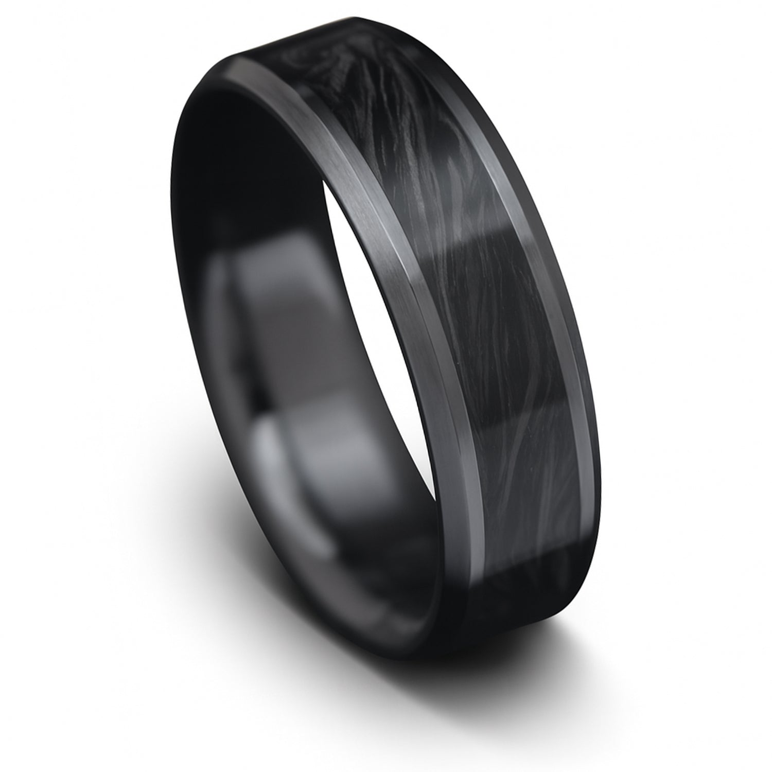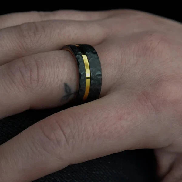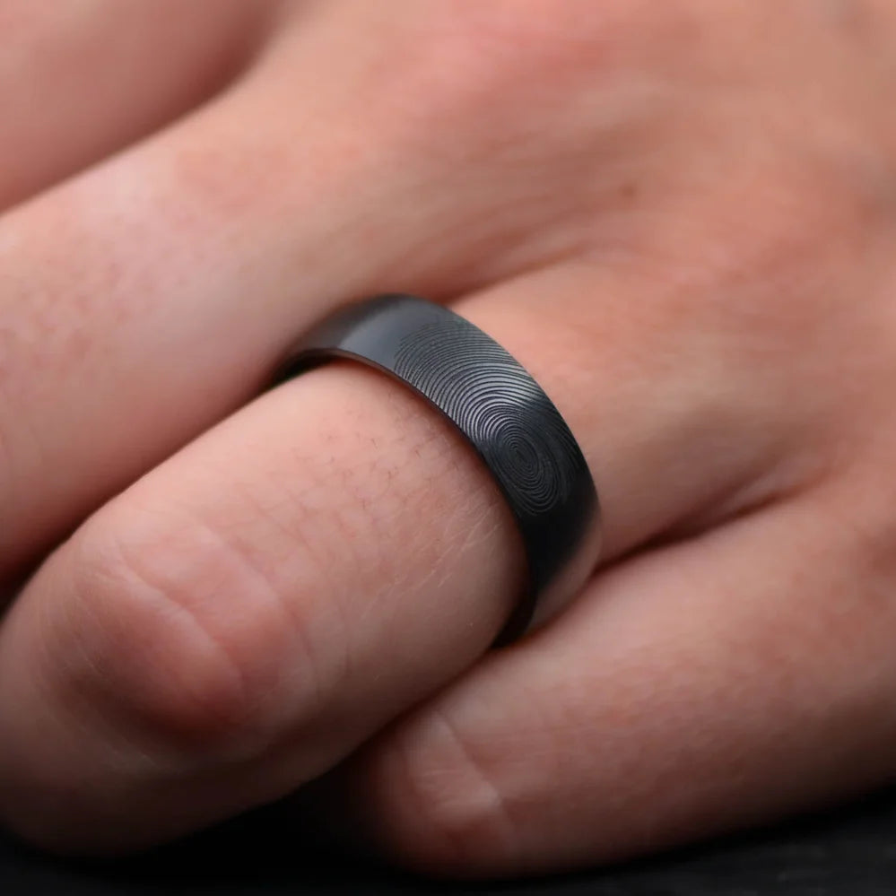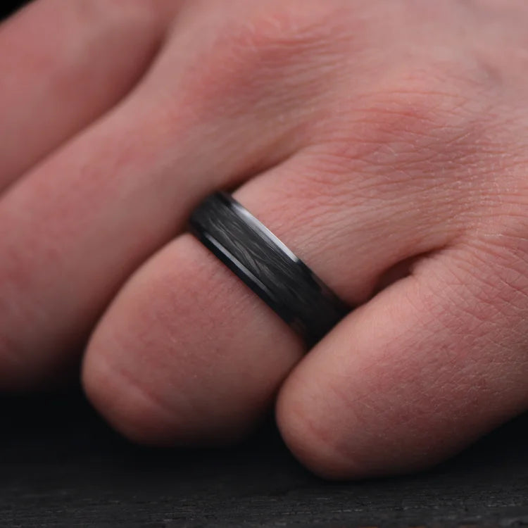 Elevate your style with the Vertex. This 8mm handmade ring is a symbol of craftsmanship and innovation. Built on a CarbonUni core to ensure lasting durability, the Black Onyx inlay adds a touch of bold sophistication with its deep black luster. The inner sleeve, carefully crafted from titanium, introduces a sleek and contemporary element.